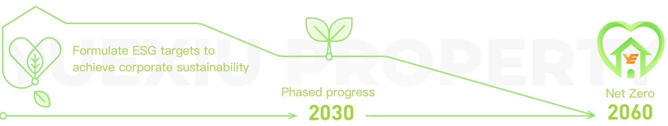 - Goal-driven: Yuexiu Property established its “dual carbon” goals in 2022 and reviewed and updated them in 2024. It goals are to reduce carbon emissions per unit area for public construction projects and residential projects by 40% and 19% respectively against 2019 numbers by 2030 , and to achieve carbon neutrality by 2060 or earlier. Yuexiu Property has broken down its “30|60” dual carbon targets for all its business sectors to help each sector more effectively advance energy-saving and carbon-reduction initiatives for different projects.