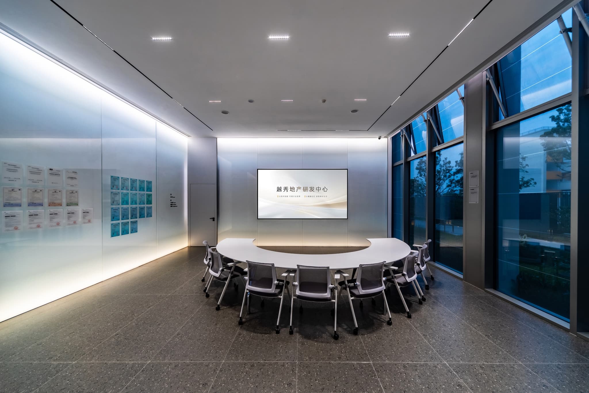 越秀地产研发中心占地6,132㎡,由地上和地下两部分组成,具备「树标培训、产技研发、应用试验、物料管理」四大核心职能。